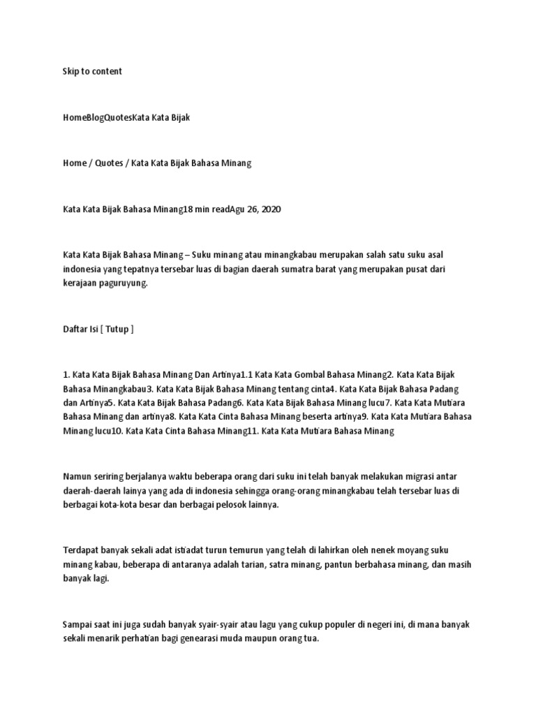 Kata Kata Bijak Bahasa Minang Dan Artinya Diary Motivasi